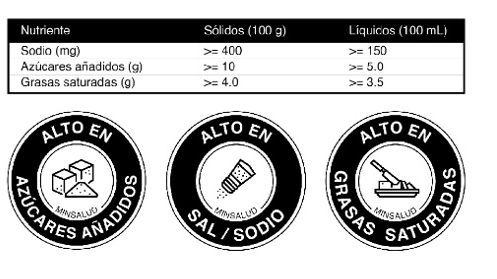 • Al igual que se deberá hacer énfasis en la palabra “EXCESO” reemplazando la palabra “ALTO” que se encontraba en el etiquetado circular y anexando el nombre MINSALUD en la parte baja de los sellos.