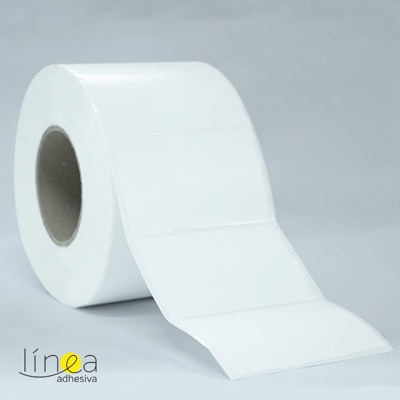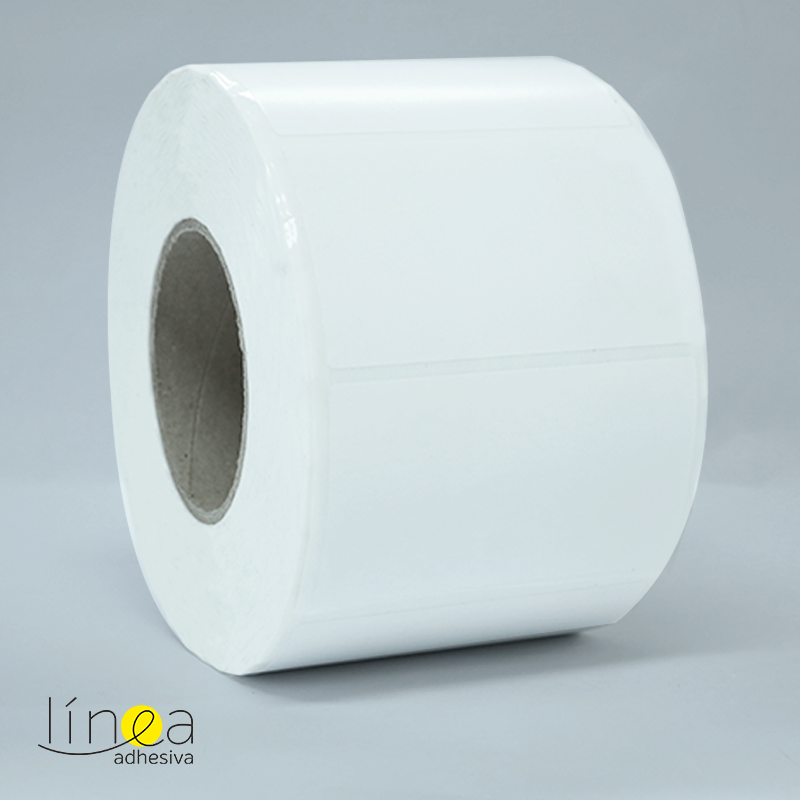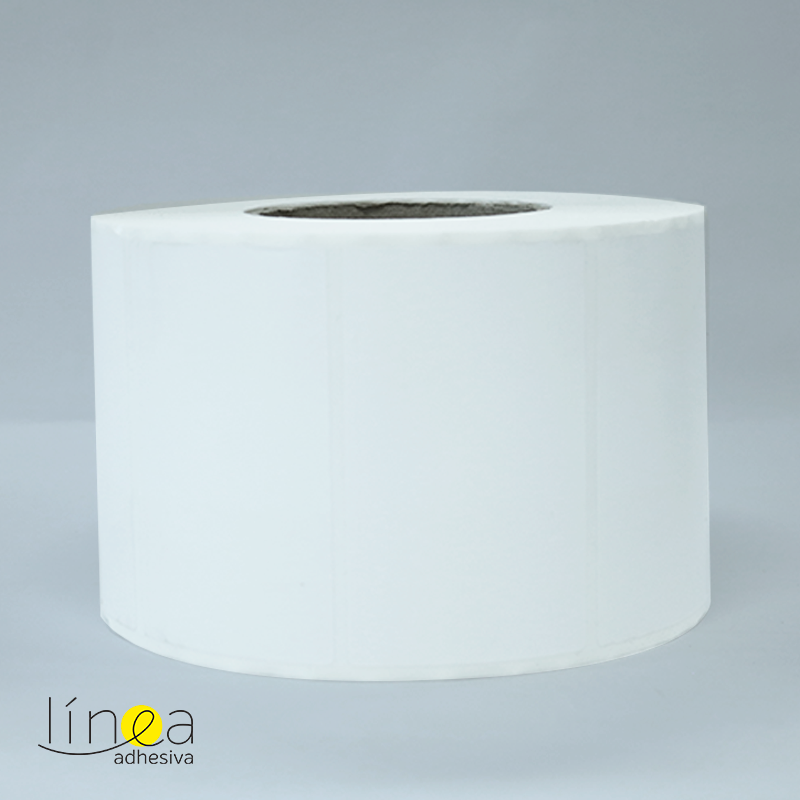 Rollos de etiquetas en papel de transferencia térmica con adhesivo permanente multipropósito y respaldo en papel de color blanco, con medidas de 10.0 cm ancho por 6.0 cm largo, el rollo viene en core de 3″, a 1 cavidad al ancho, por 2.000 unidades.