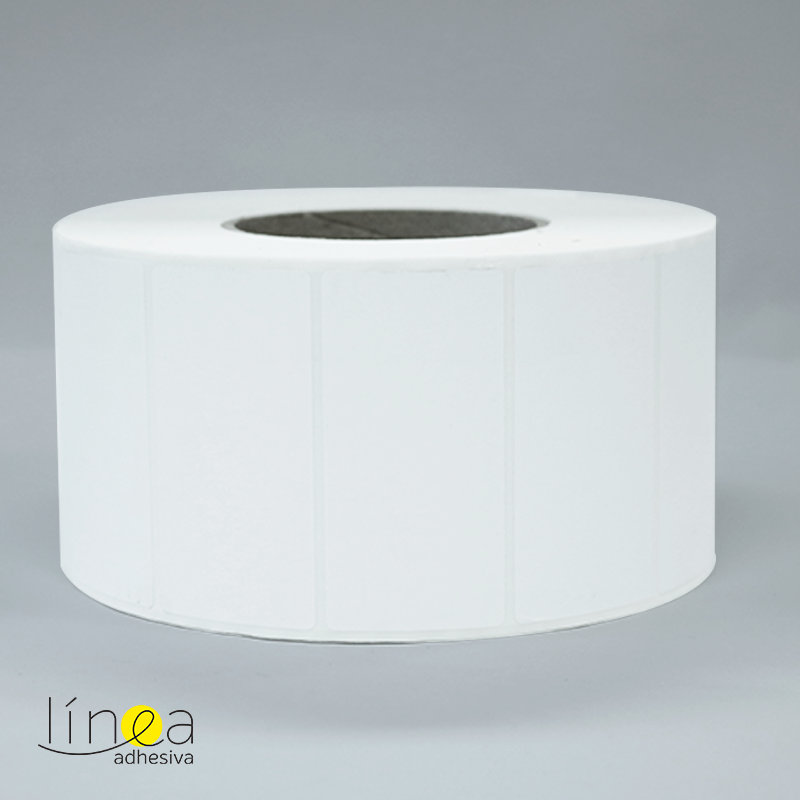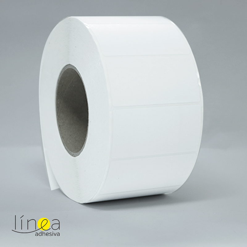 Rollos de etiquetas en papel de transferencia térmica con adhesivo permanente multipropósito y respaldo en papel. De color blanco con medidas de 8.0 cm ancho por 4.0 cm largo, el rollo viene en core de 3″, a 1 cavidades al ancho, por 3.000 unidades.